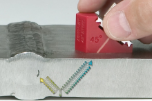 本文介绍测量加装楔块的TOFD探头上下扩散角方法,主要依据TOFD探头声场特性,利用CSK-IA标准试块的100mm半径弧面,测试TOFD探头并且加装楔块的-12dB声束扩散角。 一、 准备器材 1. T...